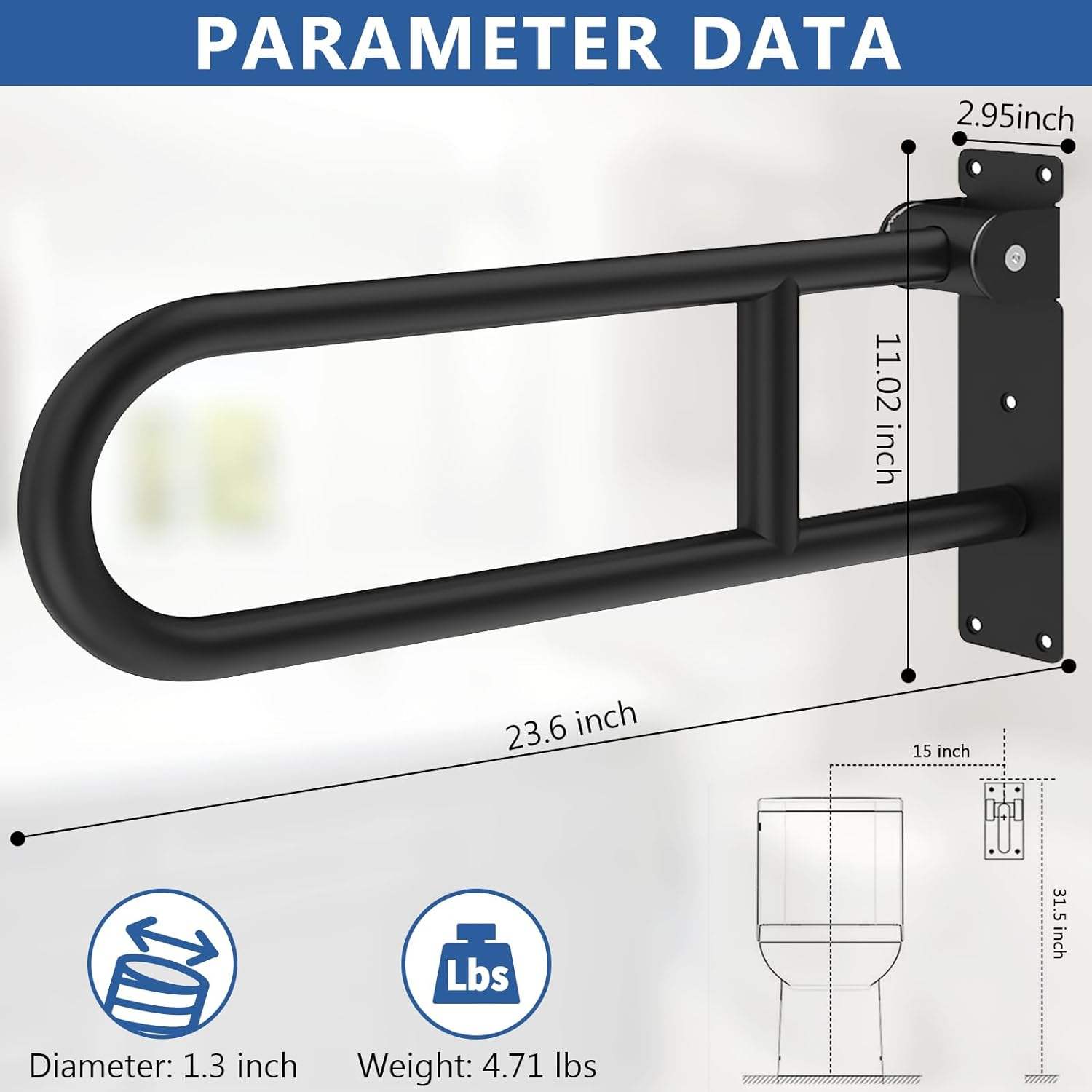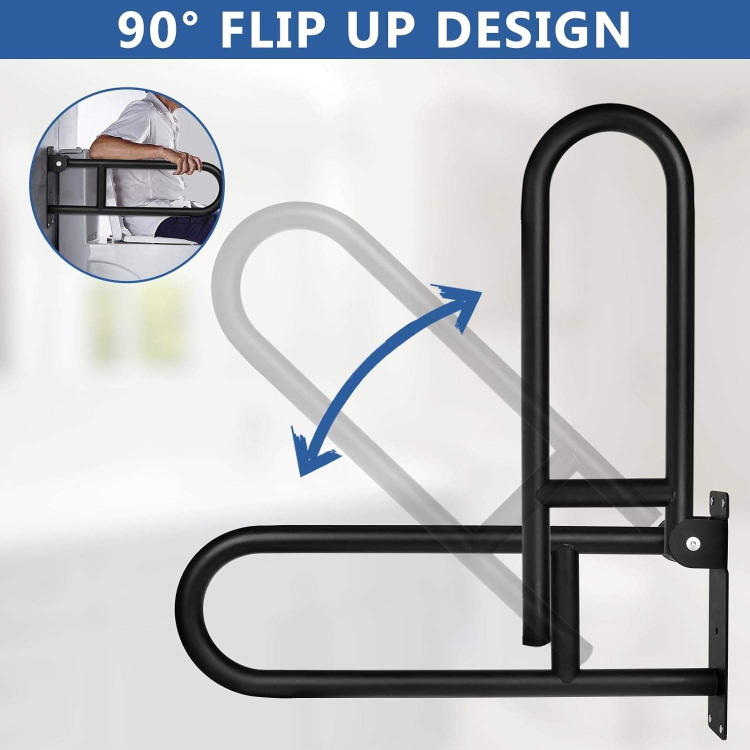 Flip Up/Swing Safety Rail Grab Bar Matt Black , Click movement ADA Compliant FGB-3011B