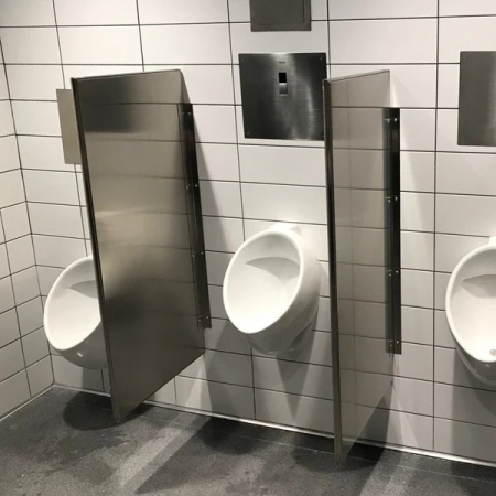 Urinal Divider Wall Mounted Modern Style 304 Stainless Steel for Public Bathroom / Men Washrooms. Size Height 680 mm. x Depth 350mm. Satin Finish SN-UDS-01